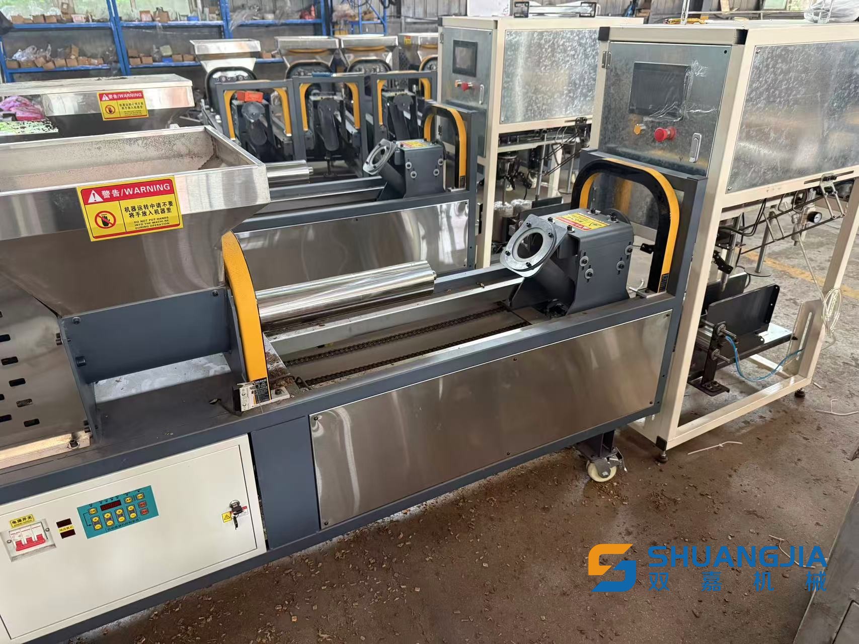 機(jī)器持續(xù)運(yùn)轉(zhuǎn),每間隔兩小時(shí)左右對(duì)裝袋機(jī)、窩口機(jī)進(jìn)行一次清理,對(duì)裝袋機(jī)