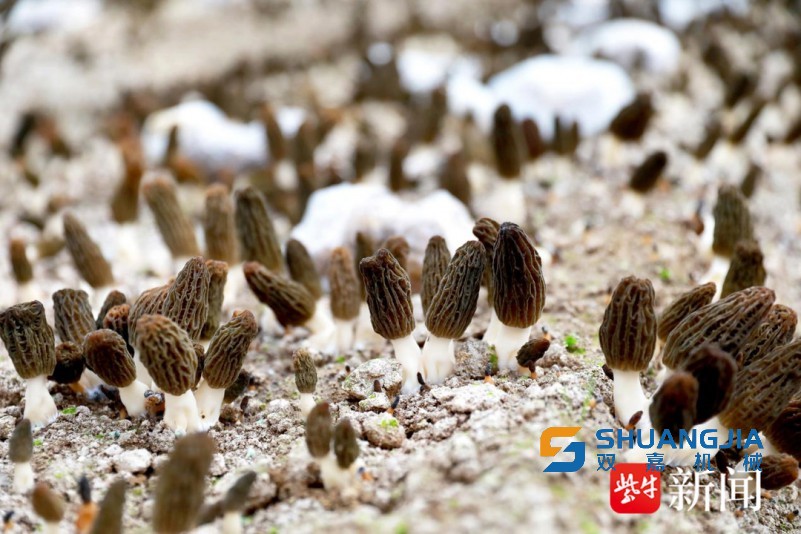 羊肚菌是一種珍稀的食藥用菌,味道鮮美,營養(yǎng)價值極高。每年12月種植,次年2月底3月初采收,具有生長周期短、產(chǎn)量高等特點。村民充分利用“冬閑棚”資源,在 3-4個月時間內(nèi)完成羊肚菌種植、采收。羊肚菌采摘結(jié)束后,翻耕輪種木耳、竹蓀和草菇,實現(xiàn)“一棚多用”。目前鳳城街道羊肚菌種植面積達(dá) 8000 余畝,行業(yè)產(chǎn)值達(dá)8億元。