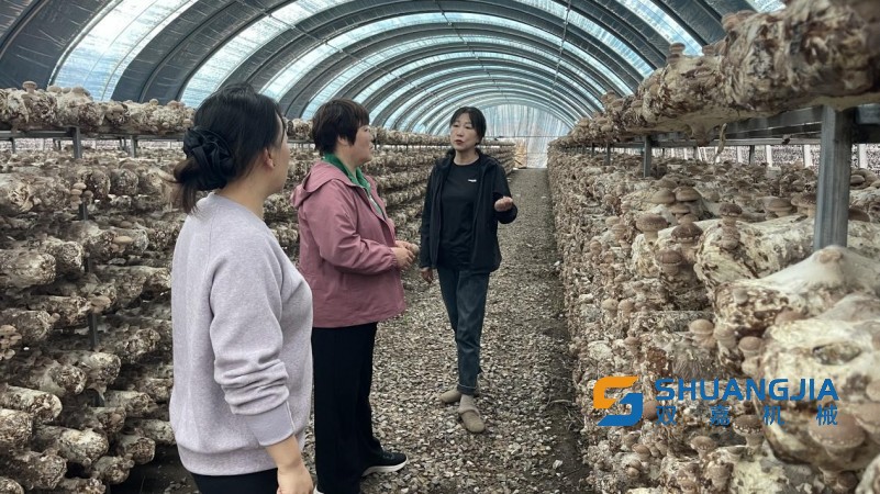 在榆樹鄉(xiāng)興龍食用菌合作社,專家現(xiàn)場查看了香菇菌棒轉(zhuǎn)色出菇情況,針對香菇0912品種爆發(fā)出菇進行指導(dǎo)。劉俊杰指出,一些香菇品種本身具有出菇集中、爆發(fā)的特點,在適宜的環(huán)境條件下,能夠快速形成大量的子實體原基,從而呈現(xiàn)出爆發(fā)出菇的現(xiàn)象??梢酝ㄟ^少量注水的方法,破壞其菌絲生長舒適條件來控制集中出菇,促進高質(zhì)量出菇、出好菇。